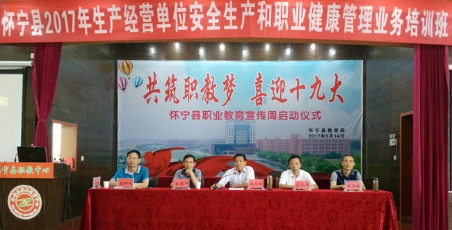 為強化安全生產(chǎn)管理和職業(yè)健康管理業(yè)務(wù),督促用人單位落實安全生產(chǎn)和職業(yè)健康管理主體責任,提高勞動者的安全生產(chǎn)及職業(yè)病防范意識,保障勞動者的身體健康。2017年6月18日,由懷寧縣安全生產(chǎn)監(jiān)督管理局主辦,懷寧縣職教中心承辦的“懷寧縣2017年生產(chǎn)經(jīng)營單位安全生產(chǎn)和職業(yè)健康管理業(yè)務(wù)培訓班”成功在該??萍即髽桥嘤柎髲d隆重開班。懷寧縣安監(jiān)局副局長余向陽、懷寧縣職教中心校長郝浩軍等出席了開班儀式。懷寧縣工業(yè)區(qū)以及各鄉(xiāng)鎮(zhèn)企業(yè)負責人、安全管理人員和職業(yè)健康管理人員約350人參加了本次培訓班。