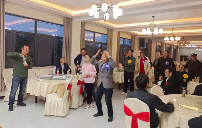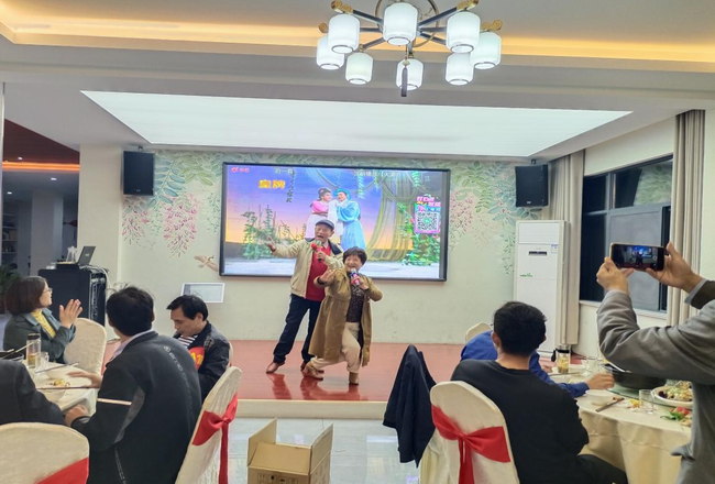 活動結(jié)束后,學校為參加活動的全體同仁準備了豐盛的晚宴。大家一邊吃飯,一邊回顧活動中的有趣場景,場面十分熱鬧。席間,余董不僅每桌敬酒,還為大家深情演唱了《九月九的酒》《一晃就老了》等耳熟能詳?shù)母枨?;黃梅戲藝術(shù)家都飛飛、時小柳兩位前輩為大家表演了黃梅戲經(jīng)典唱段《夫妻雙雙把家還》《海灘別》。場上唱的投入,場下聽的入神,叫好聲、鼓掌聲為我們的這場重陽節(jié)趣味活動畫下了圓滿的句號。(撰稿:鄭素霞 審稿:徐志清)