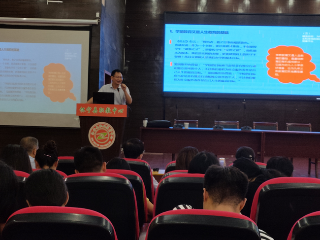在學(xué)??萍紭嵌喙δ軓d,郝浩軍首先對全體來賓表示熱烈歡迎,并從辦學(xué)理念、師資配備、辦學(xué)目標(biāo)和硬件設(shè)施等方面向與會老師介紹了我校的整體辦學(xué)情況,并將學(xué)校學(xué)前教育專業(yè)建設(shè)的經(jīng)驗做法進(jìn)行了交流。