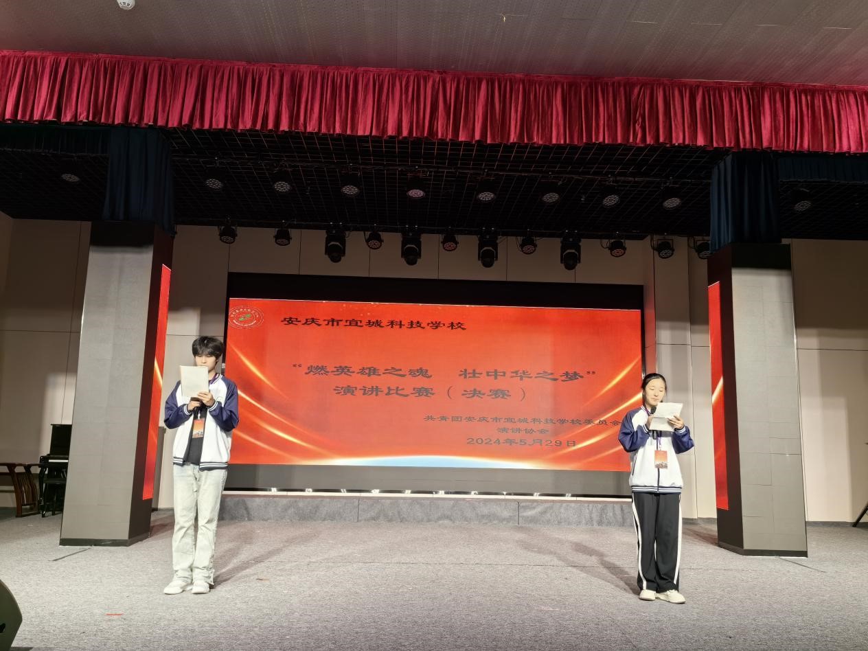 為深入學(xué)習(xí)貫徹習(xí)近平新時代中國特色社會主義思想,引導(dǎo)廣大青少年追尋紅色記憶,弘揚英雄精神,賡續(xù)紅色血脈,厚植愛黨、愛國、愛社會主義的情感。安慶市宜城科技學(xué)校于5月30日在科技樓二樓演播廳成功舉辦了“燃英雄之魂,壯中華之夢”主題演講比賽決賽。